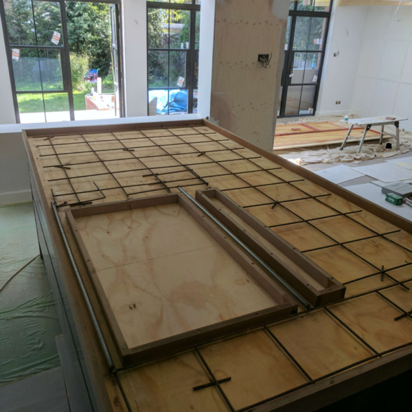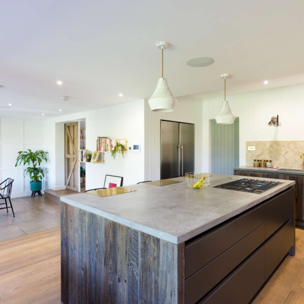 • Bespoke cast-on-site concrete worktop.
